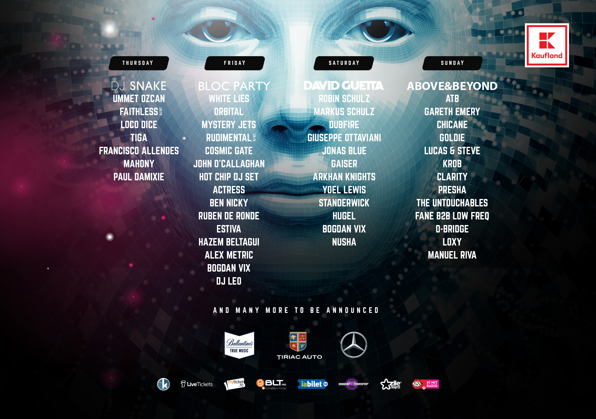 DAVID GUETTA brings his A-game in a revolutionary light & visuals show on Saturday night. Robin Schulz, Jonas Blue, Dubfire and Markus Schulz are confirmed to play the festival as well.